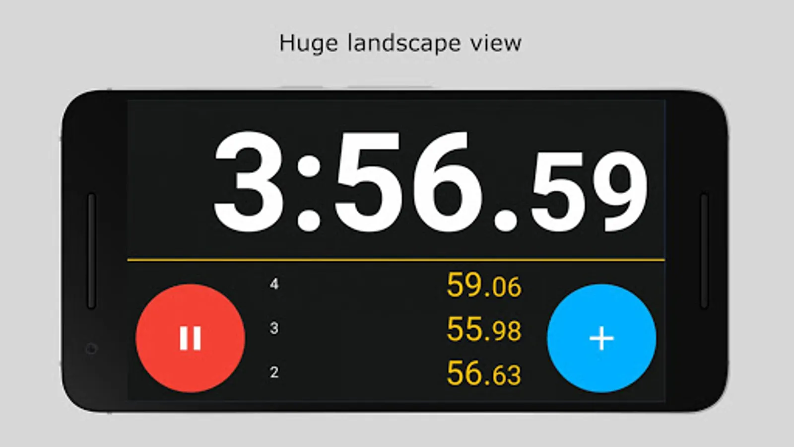 Stopwatch 2 - Advanced lap timer for Android also has a huge landscape view so your time sessions can be displayed with huge numbers.