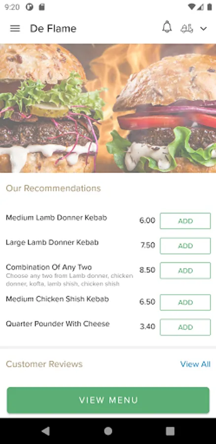 Here at De Flame, we serve a variety of food such as pizza, burgers, wraps, kebabs and more.