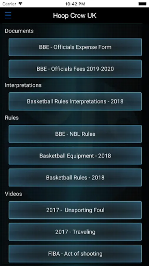 If you are revising for an exam, or want to keep sharp on the rules, get quick access to resources directly from the FIBA website. Again, all documents are cached into your phone with the ability to quickly print off expenses forms, rules, etc.