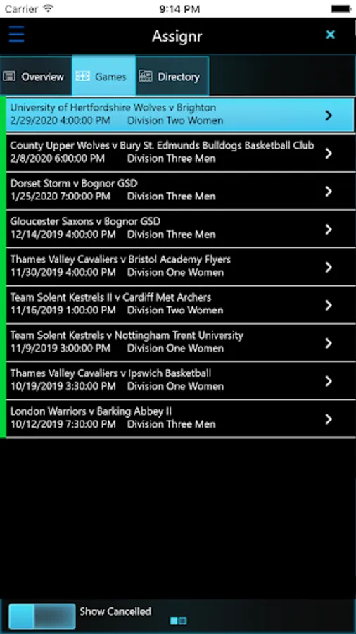 Assignr.com Integration enables listing of games and assignr registered colleagues in the directory, that is stored, encrypted, offline for rapid access to those match day contacts, even without internet.