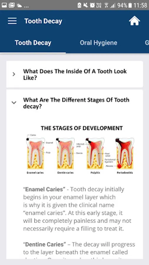 My Dental Care is a free easy-to-use educational guide demonstrating what you can do at home to help you protect your teeth and prevent dental problems. This app contains the latest prevent advice based on recommendations set out by Public Health England.