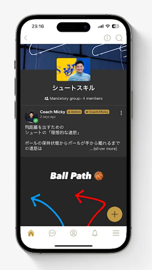 オープンなSNSとは違い、完全会員制のクローズドコミュニティで熱量の高いコーチやプレイヤー向けのアプリケーションです。