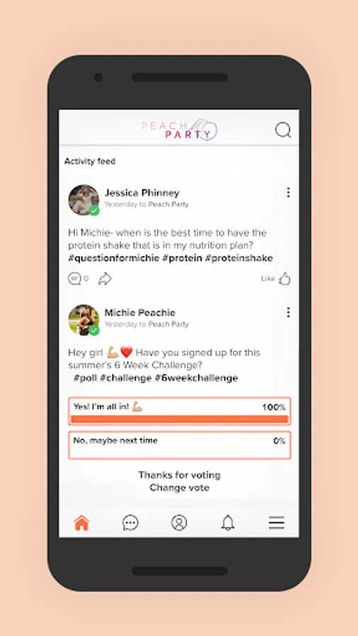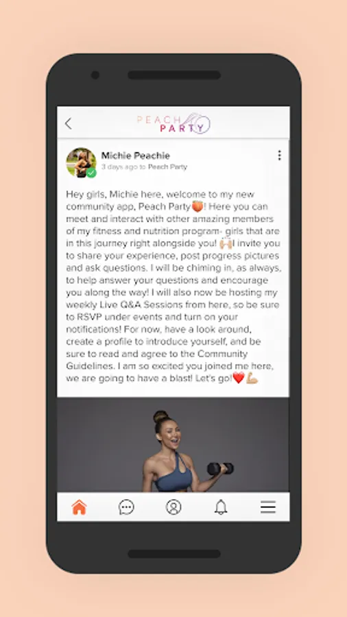 A community app where fans and clients of fitness trainer Michie Peachie gather to discuss fitness, nutrition and living a healthy lifestyle.