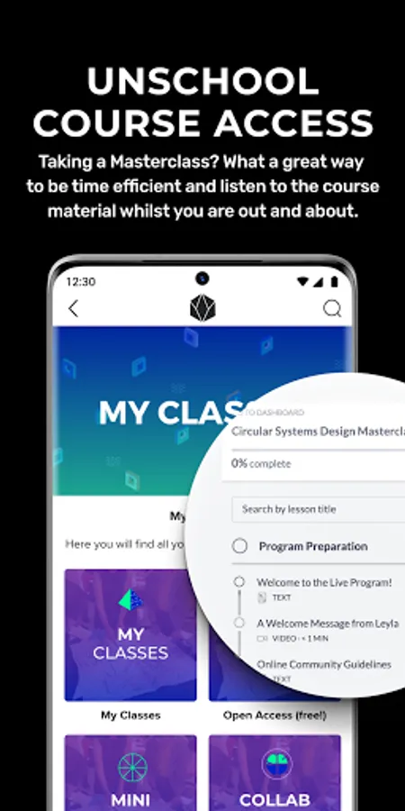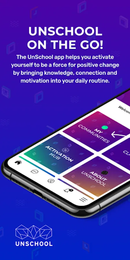 UnSchool course access: Be free of your laptop! Use the same email as your UnSchool Online account to access all your enrolled courses. A great way to listen to course material while out and about. Special groups and bonus content for students taking certification tracks, Masterclasses and programs, plus all new app signups get enrolled in a bonus free Monthly Activation challenge, each month different content is dropped for you to explore ways you can be a positive influence on the world around you!