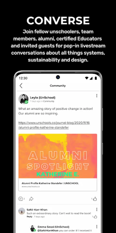 Whether you're just getting started or you’re more advanced along your change-maker journey, grow among a supportive international community filled with professionals and emerging leaders who share a common mission for a more sustainable and positive planet. Get monthly activation challenges, drop-in live sessions from UnSchool team, alumni, and special guests, and exclusive content that helps you activate your change-making initiatives. Search for other UnSchoolers in your area, connect and message them. Our community connection features means you can enjoy collaboration, connection and conversation in themed communities! Enjoy the convenience of all your enrolled UnSchool classes right at your fingertips with single-sign-on access.