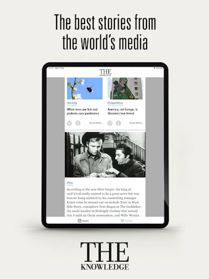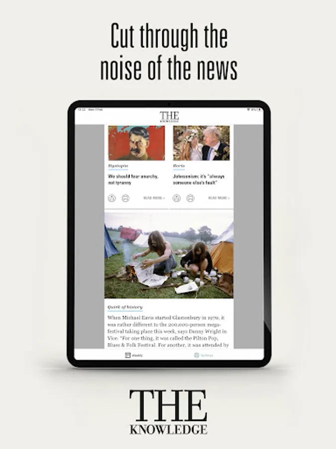 Brought to you by the founder of The Week, Jon Connell, The Knowledge cuts through the noise to bring you the news and views that matter to keep you up to speed – in just five minutes a day. Every weekday lunchtime, and at breakfast on the weekend, our team of expert editors distil the most incisive comment, the most useful info, the funniest quotes, and the podcasts you need to know about from all the best news sources. In a busy and cluttered world, we offer fresh perspectives on the issues that matter in a friendly and accessible form – all in one place. Download The Knowledge today to make news manageable or sign up to our free daily newsletter at www.theknowledge.com.