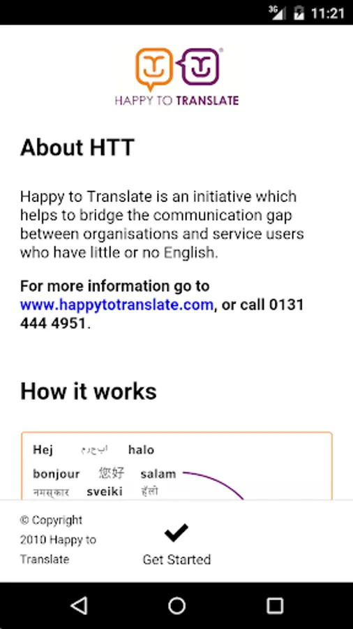 Happy to Translate (HTT) is an initiative which helps organisations engage with service users who face communication barriers. HTT provides tools, processes and training to enable staff to confidently communicate with service users who speak little or no English. HTT members are both private and public organisations that participate in a joined-up approach to promote communication support by overcoming language barriers faced by some communities. HTT members implement and maintain a high standard of customer service to improve access to information and services for all, regardless of background.