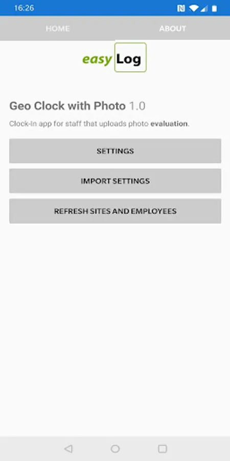 The purpose of this app is to allow supervisors to clock staff using geolocation and photo ID. The back facing camera is initially used to photograph the staff member and then the supervisor is given an option to select site, department and employee. The data is then uploaded to a server along with the current geolocation.