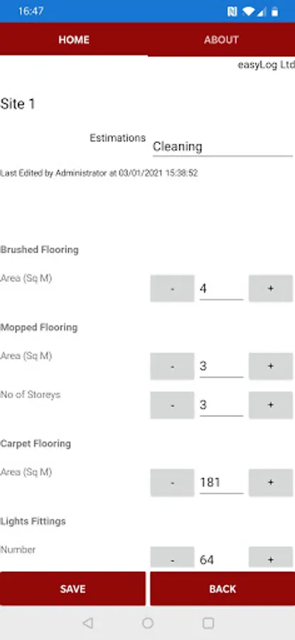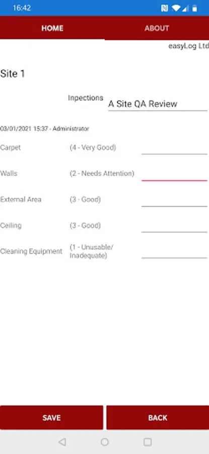 This app must be used along with the easyLog Ltd backend server software. It does not work stand-alone. The backend software, allows inspections and estimation templates to be set up which can be carried out via the app. Maintenance tasks can be flagged by sites which can be actioned by maintenance staff as well as being approved and signed off.