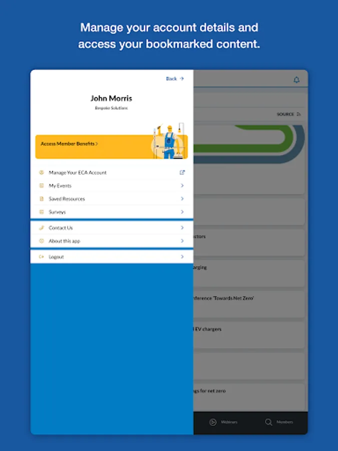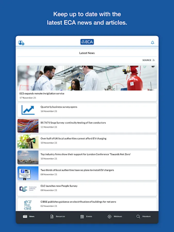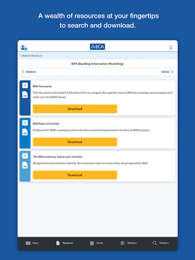 The app gives ECA Members easy access to a range of resources. Members can use this app to: