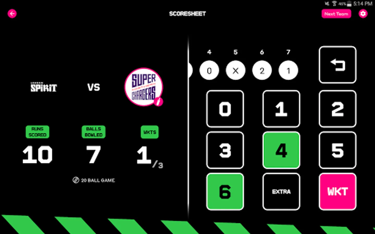 The scoring itself is super easy to use, as you’re playing simply select the number of runs made or record a wicket, and the app will automatically countdown the number of balls you have remaining. When you’ve run out of balls, swap teams!
