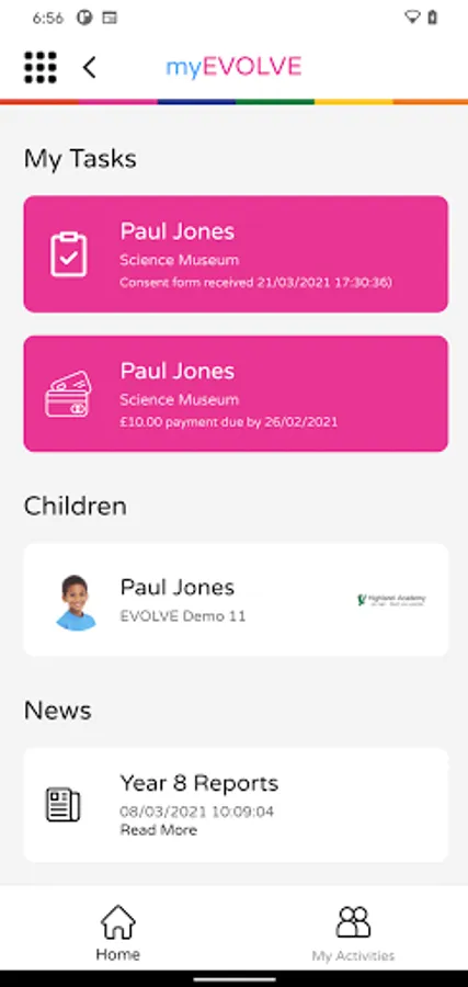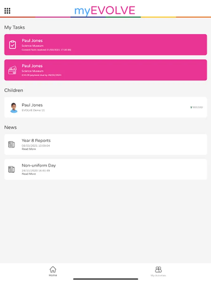 - Push notifications to alert you of important tasks that need your attention e.g. important school news, consent forms requiring completion, payments due, etc.