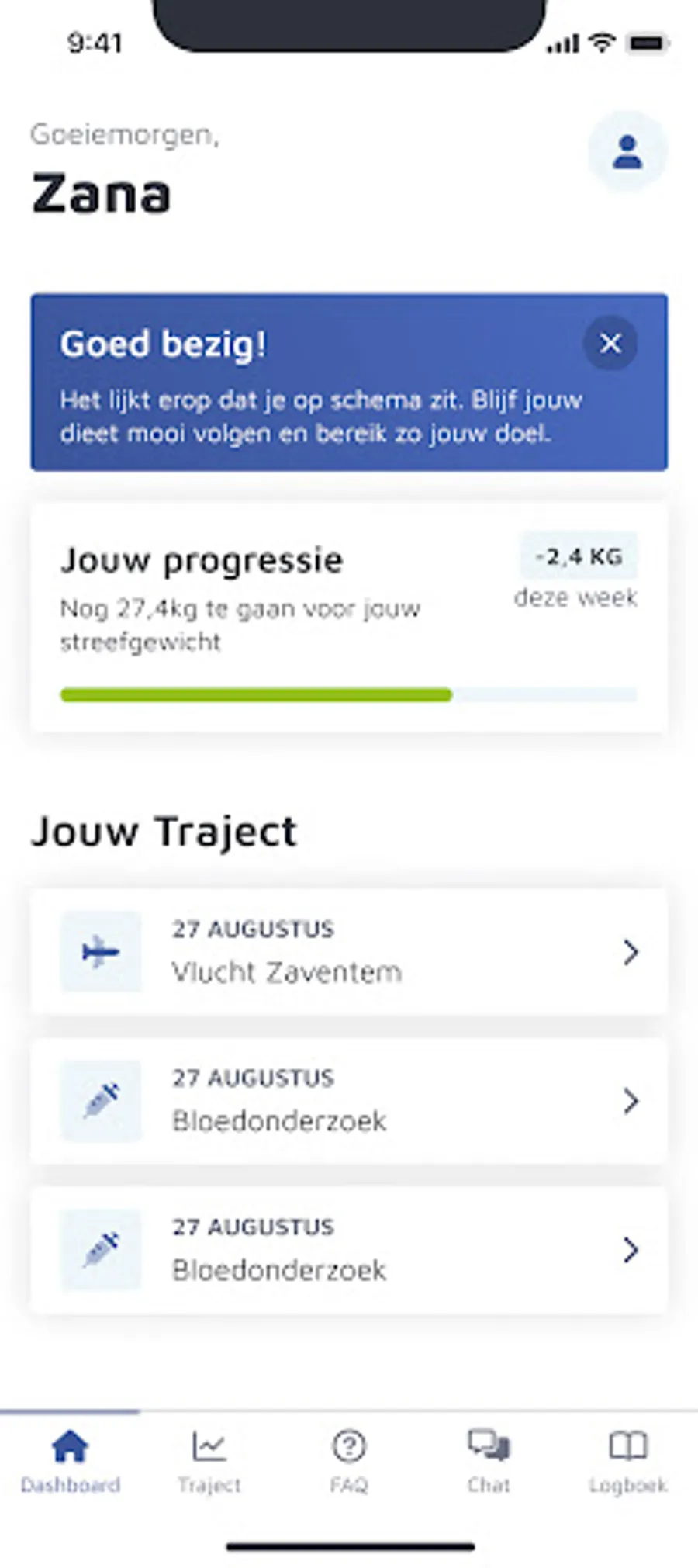 The ECFS Obesity Solutions app guides you through the Total Care Package. The app offers a full overview of your trajectory, chats with our team, logging your progress and answers to your questions.