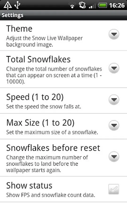 Settling Snow is a free customisable collection of winter live wallpapers where the snow can settle on the background image!