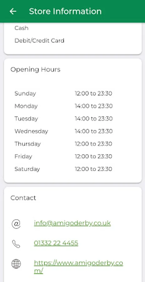 Amigo is located on 4 Midland Road, Derby, DE1 2SN. We are for you and all you need to do is decide what you want to eat. We have all your favourite foods such as Pizzas , Burgers and many more. Only the freshest and finest ingredients are used and are carefully prepared, cooked and presented to satisfy our valued customers. Then after you have eaten, we would love to hear what you think of our food and service by leaving feedback on the site.