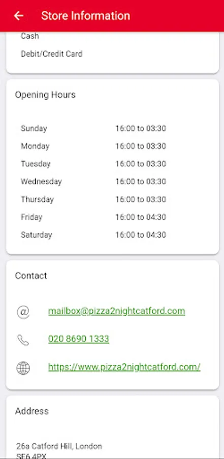 Pizza 2 Night is located in 26a Catford Hill, London SE6 4PX is the place for you and all you need to do is decide what you want to eat. We have all those favourite dishes such as Pizza, Chicken Tikka and many more. Also don't forget to write the feedback.