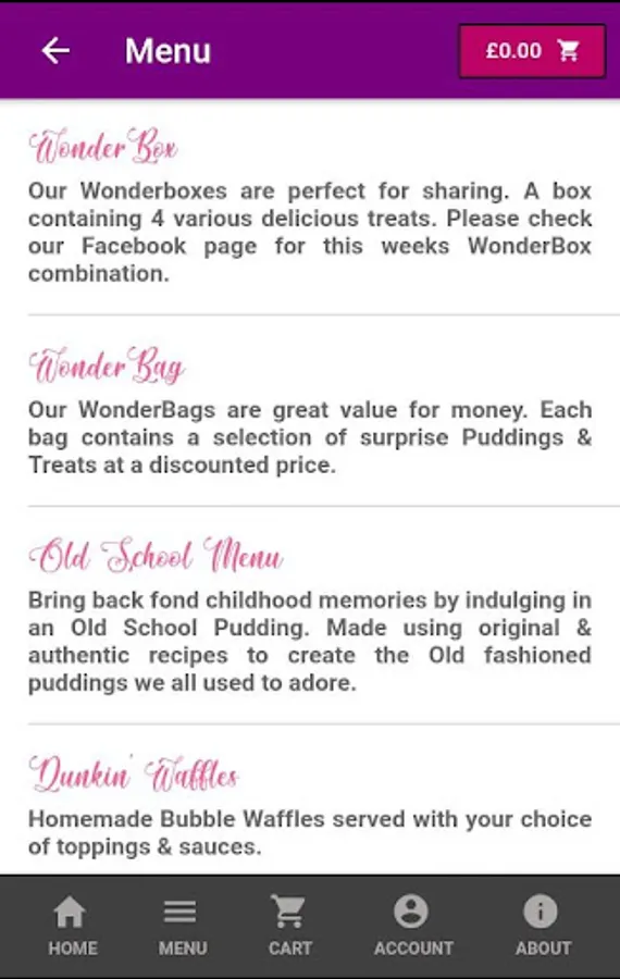 As a result, we are finally proud to unveil and introduce our latest improvement, our new online ordering website and Android mobile app ! You can now relax at home and order your favourite, freshly prepared puddings, treats, cakes and shakes from Taste of Wonderland, online.