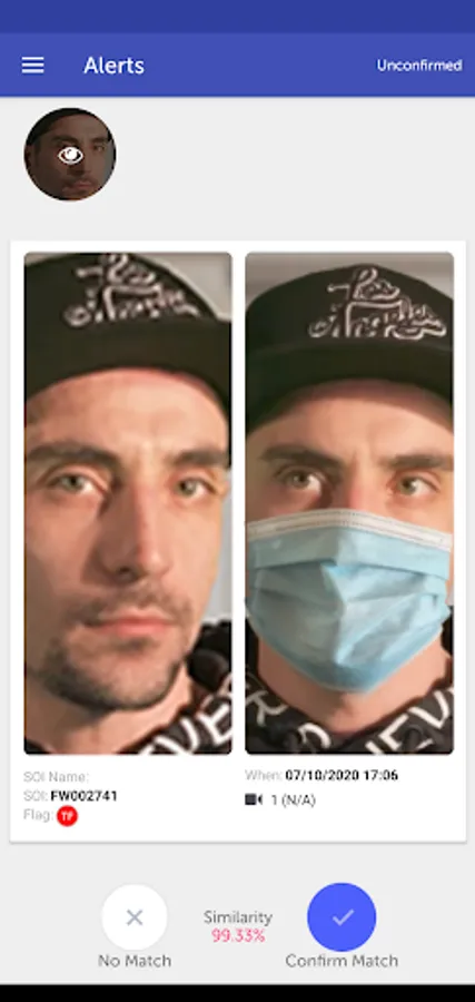 FACEMASKS: Using a revolutionary new periocular algorithm, Facewatch is able to process faces even when the subject is wearing a facemask.