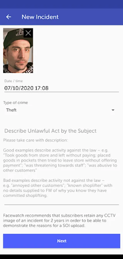 SECURITY: You have complete peace of mind regarding security and Data Protection, we use bank grade security and we share images and crime types as data controllers with other businesses that have subscribed to the Facewatch system.