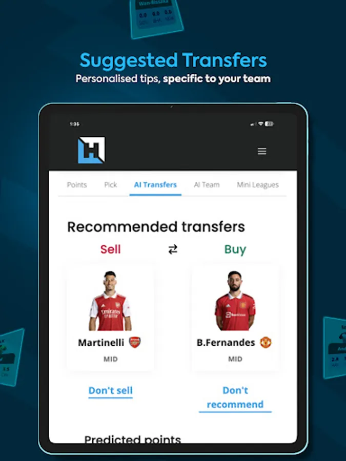 • AI recommended transfers for your team