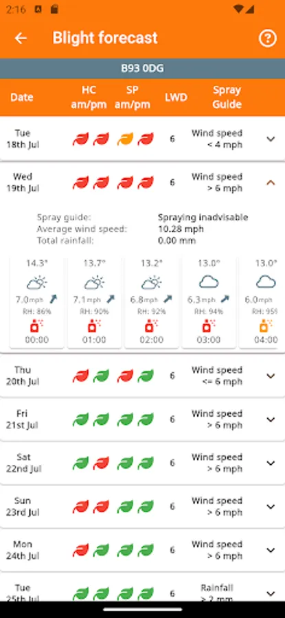 Per location/field potato blight forecast using latitude and longitude specific weather forecast data.
