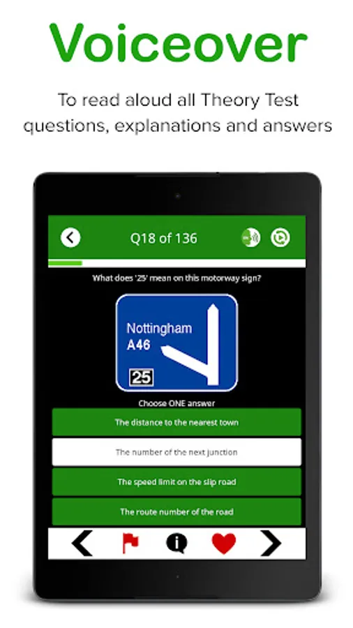β π ENGLISH VOICEOVER: Brand NEW English voiceover to read aloud ALL Theory Test revision questions, explanations and answers, to help users with reading difficulties or dyslexia.