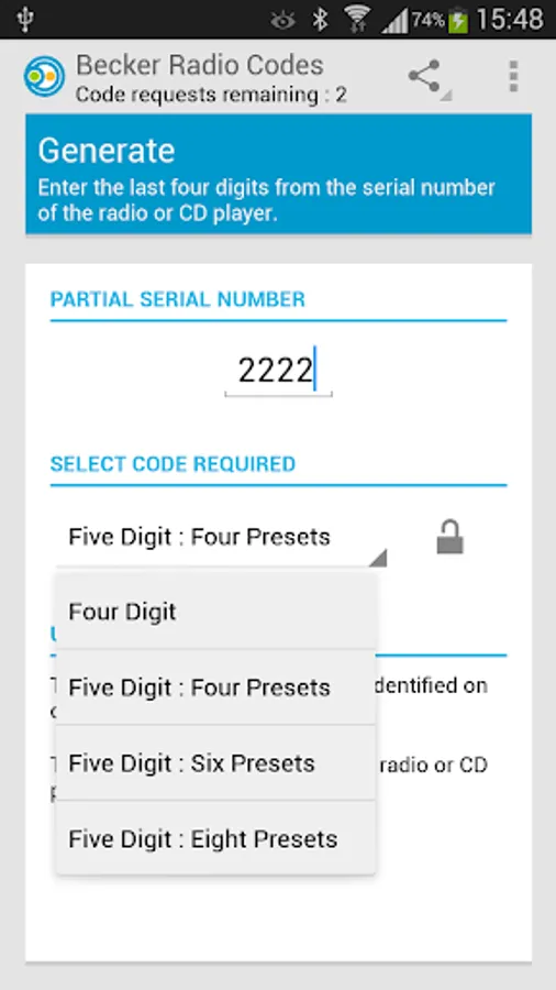 - Enter the last four digits of this serial number to generate the corresponding unlock code for your radio or CD player