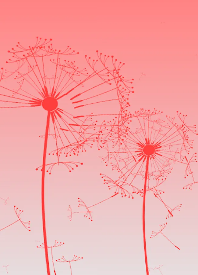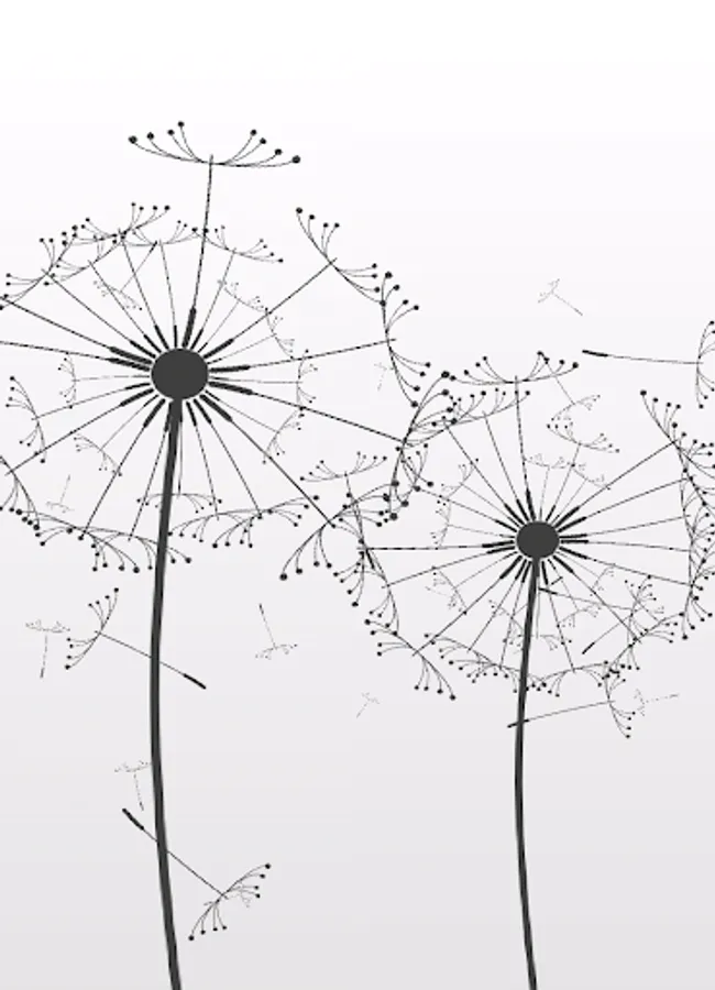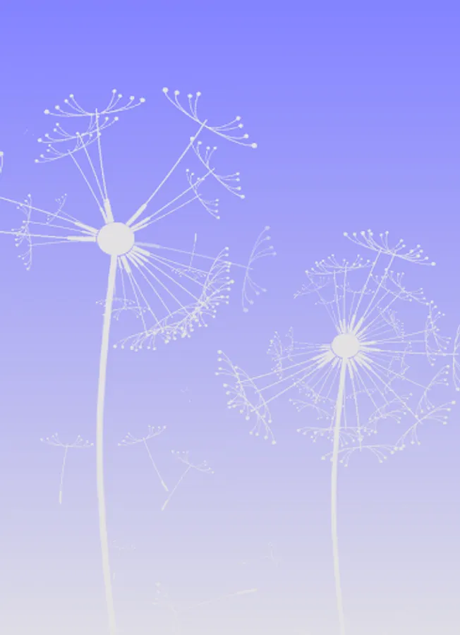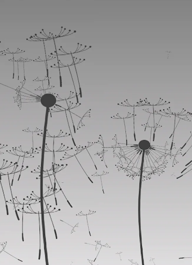 Abstract vector-style dandelion live wallpaper with floating seeds that respond to touch.