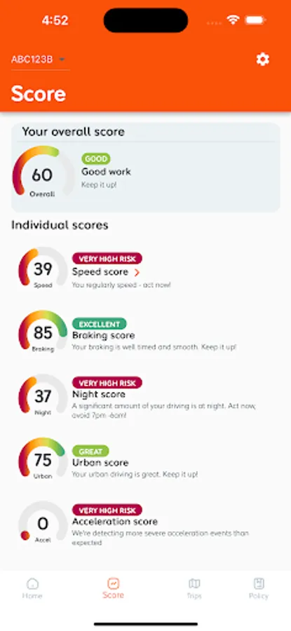 See in detail how you drive and how your Driver Score is calculated. This can help you to be a safer driver, reducing your risk of having an accident and maximising your fuel efficiency.