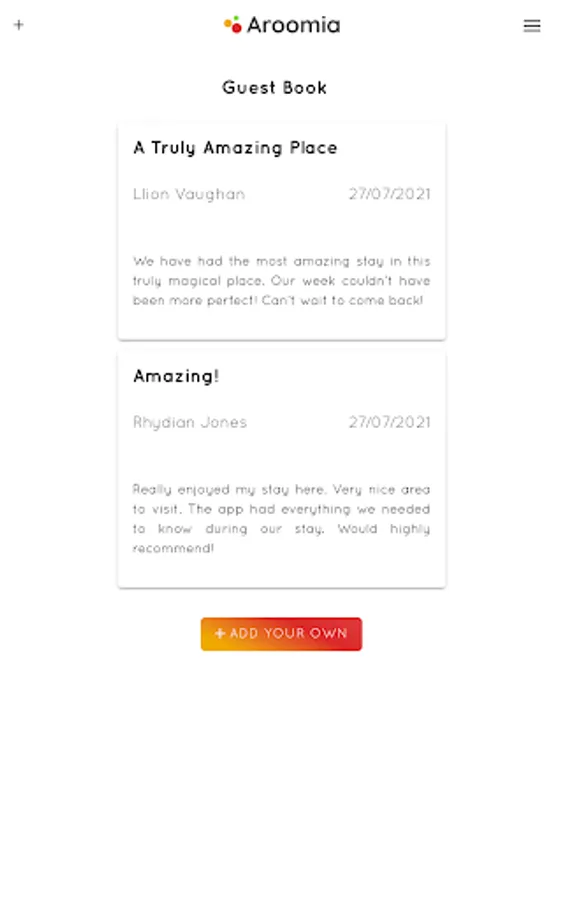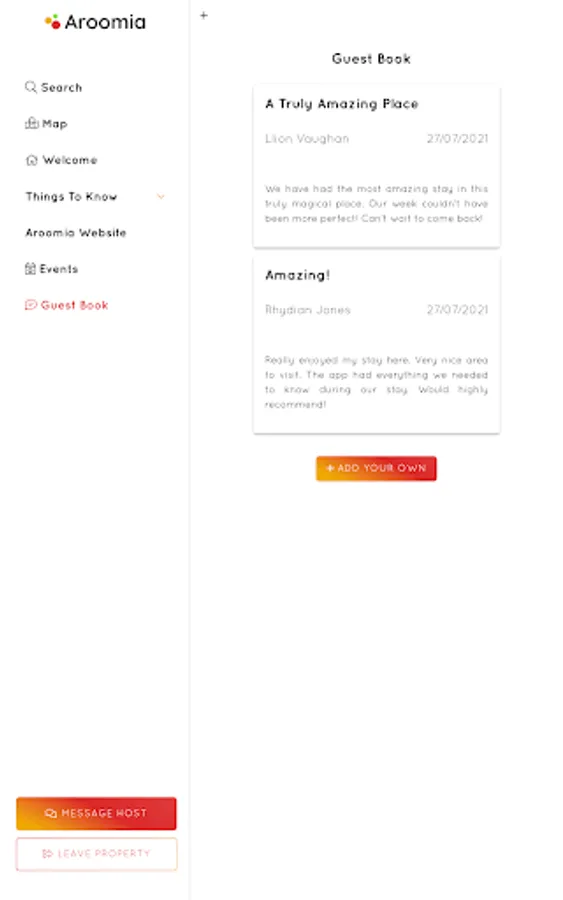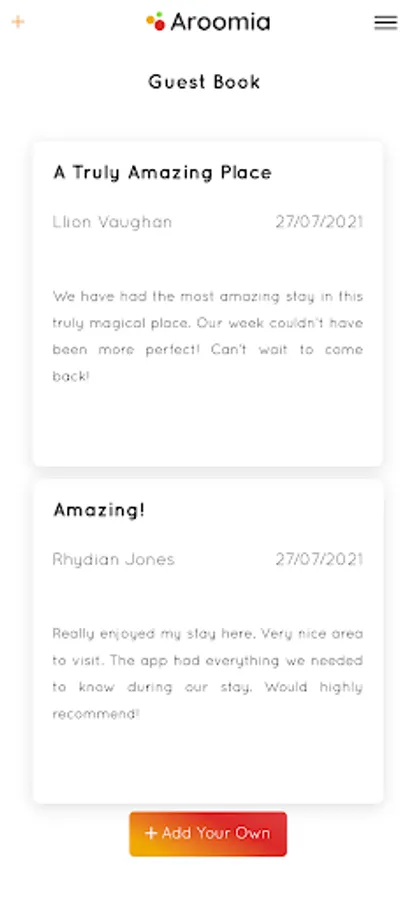 Guest book - View guest book entries left by other guests that stayed at your property. The guest book section will also give you the opportunity to write your own entry.