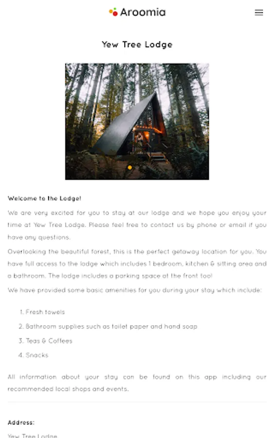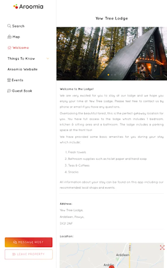 Welcome - The welcome page shows an overview of the chosen property and links to all of the relevant information.