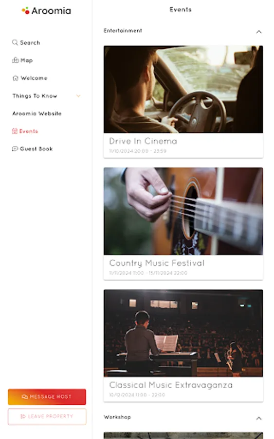 Events - The events section allows you to see current and up-and-coming events in the local area.