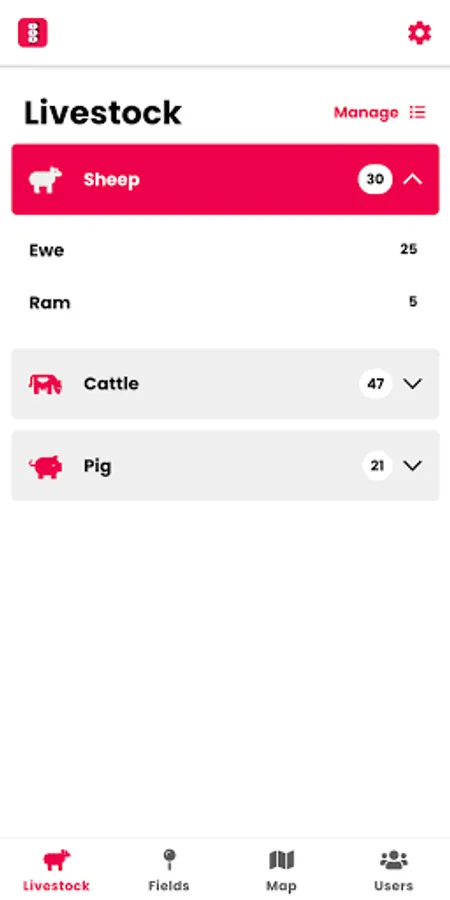 • Manage your livestock counts by adding or removing animals to/from a field.