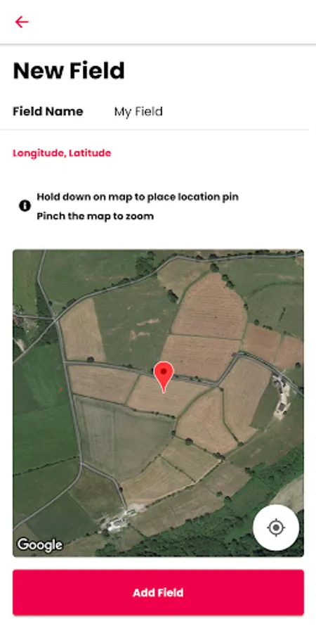 • Create different fields and add them to your farm; with their location pinpointed on a map makes it easy to view your fields geographically.