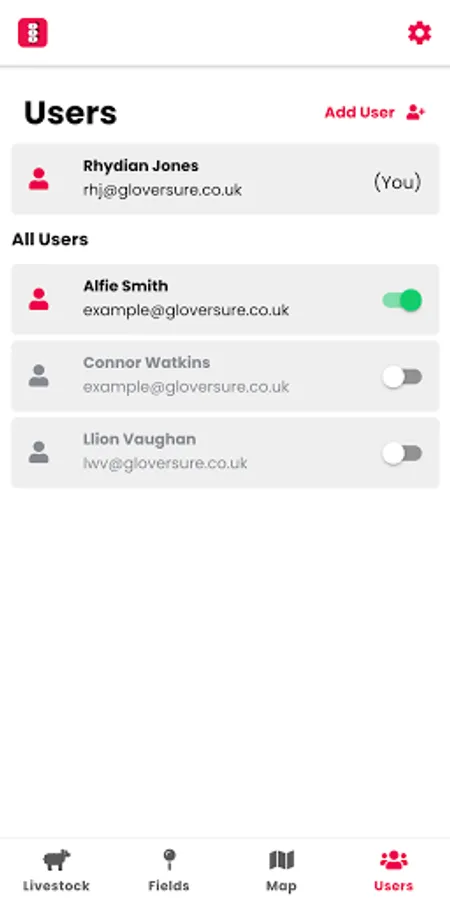 • Add other users to your farm to help manage your livestock.