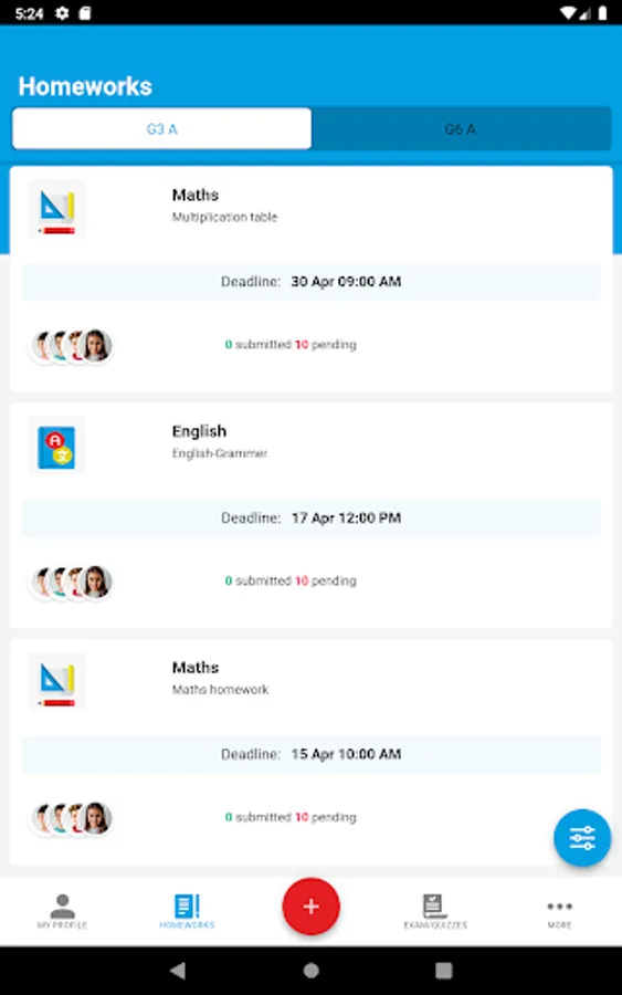 > The teacher can assess the learning index of students remotely by using Homework and real-time quizzes