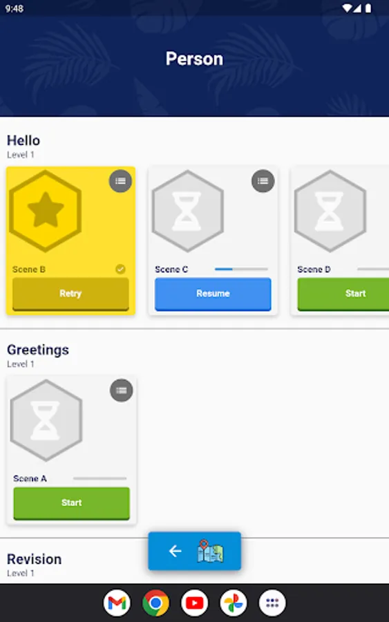 Visit different locations and scenarios to learn how to use a language in context.