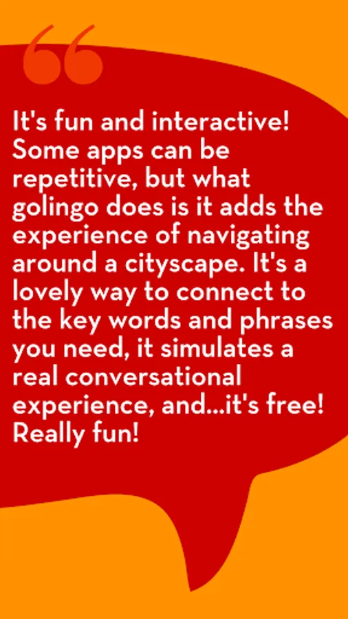 golingo is your go-to AI-speaking partner, available 24/7 wherever you are. Learning is based in a virtual city that mimics the real-world.