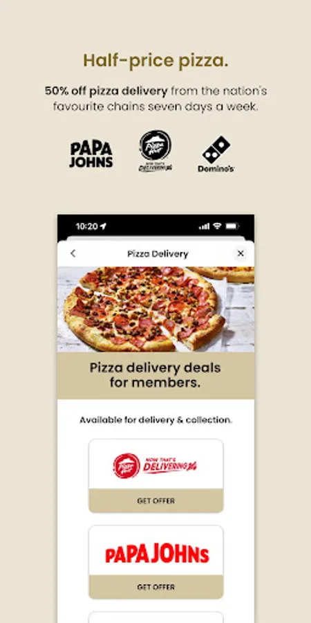 - 50% off pizza delivery from Domino's, Pizza Hut, and Papa Johns, 7 days a week.