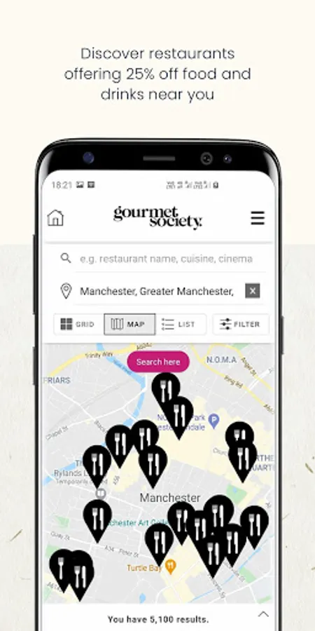 gourmet society offers 25% off the total restaurant bill, 50% off food or 2 for 1 meals at the UK's most popular brands including PizzaExpress, Gaucho, Vintage Inns and Prezzo. gourmet society is also available at your local independent including Michelin-starred restaurants. Open our in app search to find out what's near you.