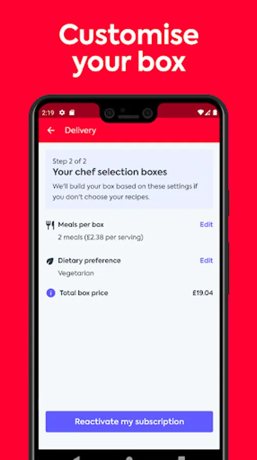 • Swap your recipes right up until your box is packed (3 days before delivery).