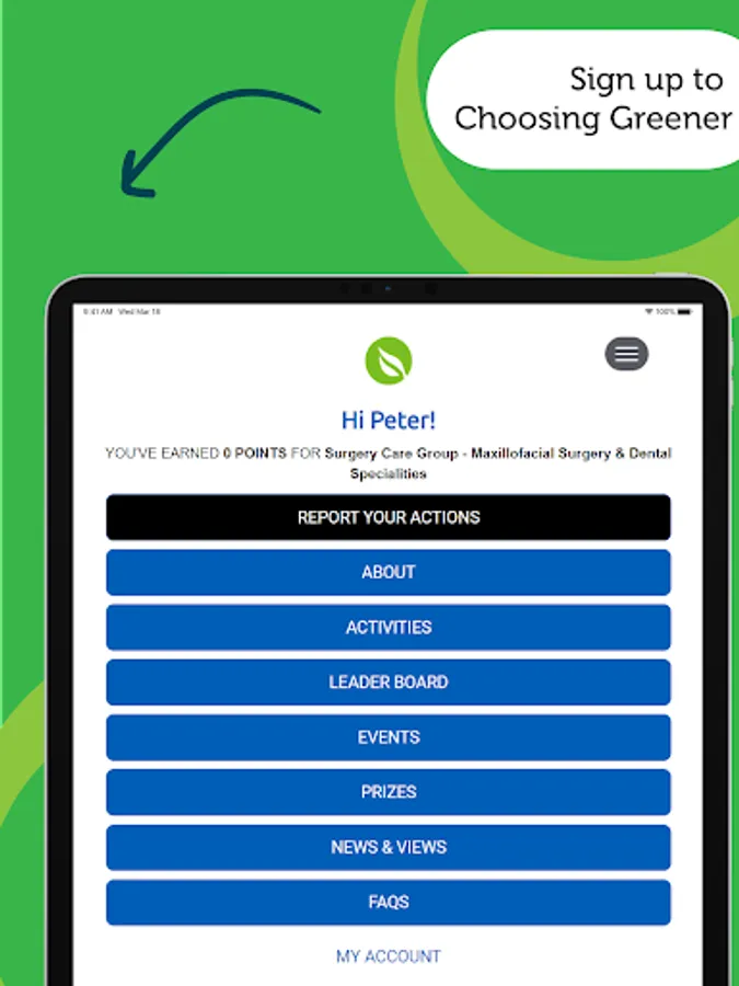 This app is the companion for the Choosing Greener programme, designed to reward you for taking positive sustainability actions.