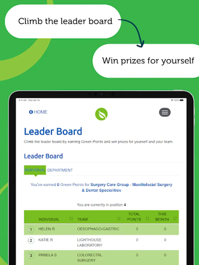 You can make submissions, opt into activities and earn Green Points as well as view leader boards and enter your weekly achievements.