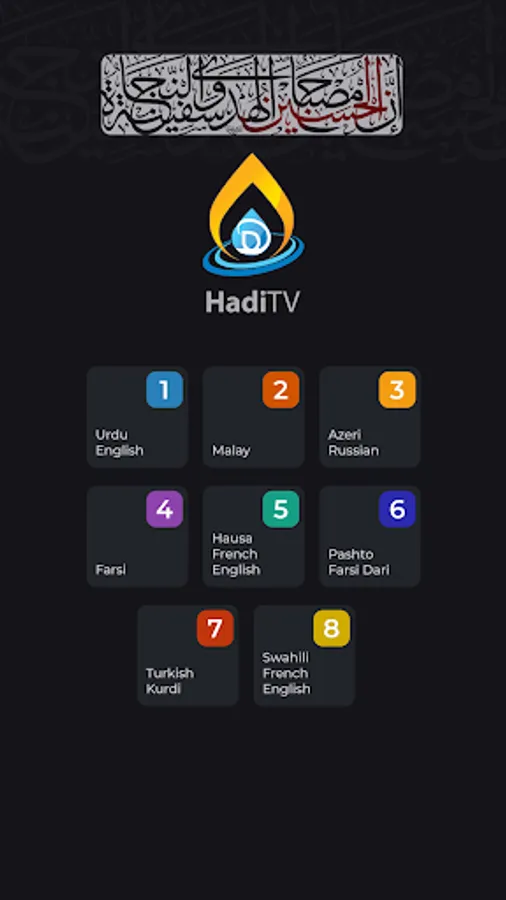 • Due to its large audience, HadiTV app now hosts and telecasts 8 channels in 13 languages, such as English, French, Arabic, Russian, Farsi, Kurdi, Pashto, Swahili, Turkish and etc.