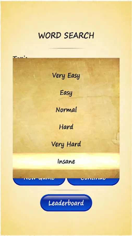 3.- Difficulties: Very Easy, Easy, Normal, Hard, Very Hard, Insane