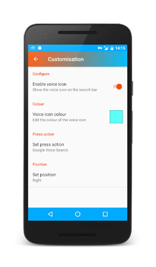 Want the Google logo on the left side of the bar and the voice icon on the right? Or just want the voice icon on the search bar? No problem! The app has you covered. Whether you want only the voice icon on the search bar, or want to choose the position for the icons, the app allows you to do that.