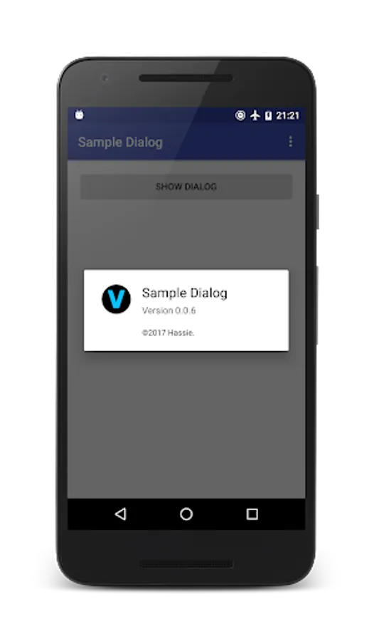 This Android library generates a material dialog with version info for your app; using the same style as Google's Android apps version info dialogs. The dialog shows the app icon, app name, version name and copyright notice.