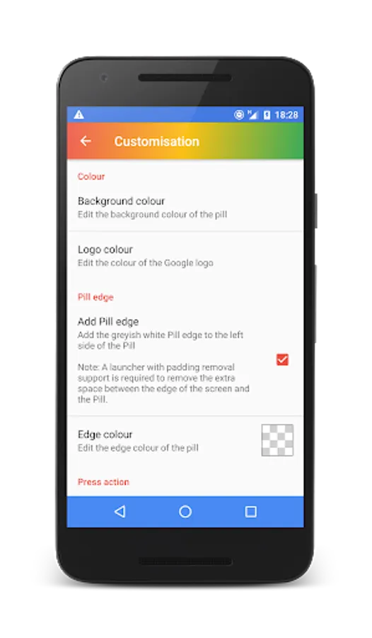 Customise the pill background, logo and text colours with transparency support to better match your home screen. With a transparent shade of a colour, make the pill see-through, making your wallpaper visible!