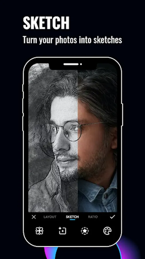 Photo Editor, Camera, Portrait provides lots of effects such as dripping, sketch, wing effect, remove the object, remove/change background, stickers, presets, exposure, brightness, contrast, saturation, temperature, tint, hue, frames, borders, animated filters, swap face editor, cool photo collage and much more...