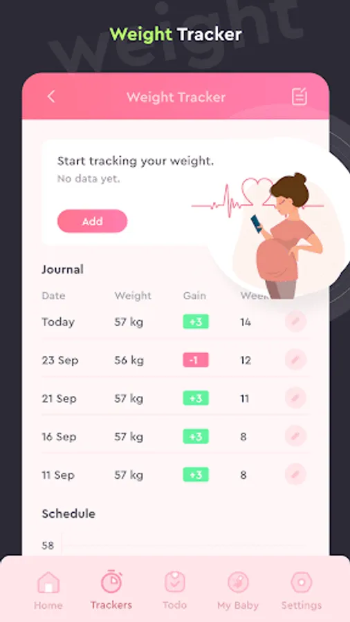 “Pregnancy & Baby Tracker” is your perfect partner during pregnancy, offering a wide array of features to ensure you have all the information you need at your fingertips.